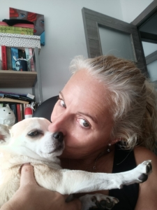 Siempre buscando nuevas tareas a realizar. Es una manitas…te pinta un cuadro, te decora una casa, o te ayuda con tu seguro…además de guapa, es madre de dos perritos que están aquí más abajo…y de dos personas excelentes (Alicia y Kevin). Madre coraje!